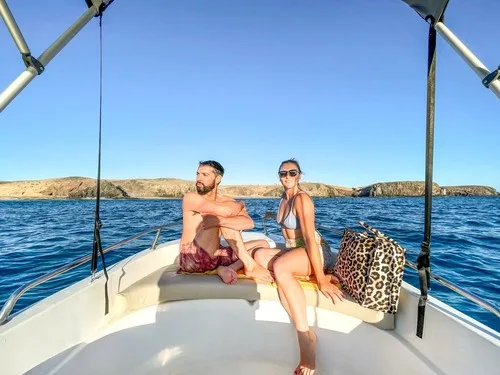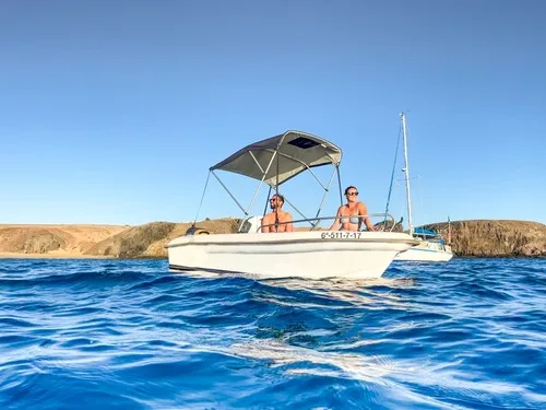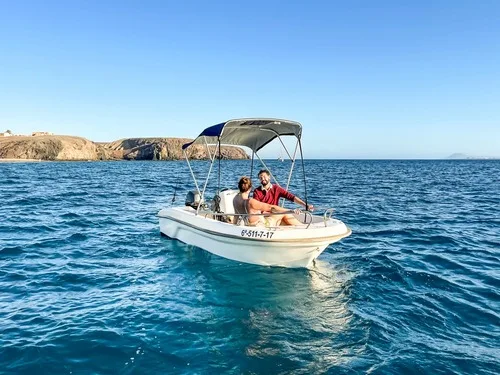 One of the most requested boats at Playa Blanca. It does not require a licence to drive it. It’s very wide, driving it is super easy and fun. Seeing Papagayo beach from the sea is magic. No skipper unless requested. Cancellation policy: 100% refund up to 24 hours. Fuel tank is included in the price.